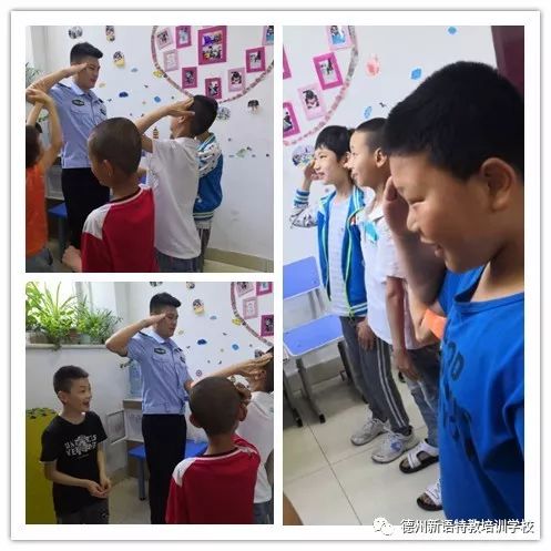 看到警官叔叔阿姨們的到來,孩子們可高興了,二年級三班的小朋友們有模有樣地跟著警官叔叔學(xué)習(xí)敬禮,樣子可愛極了~~~