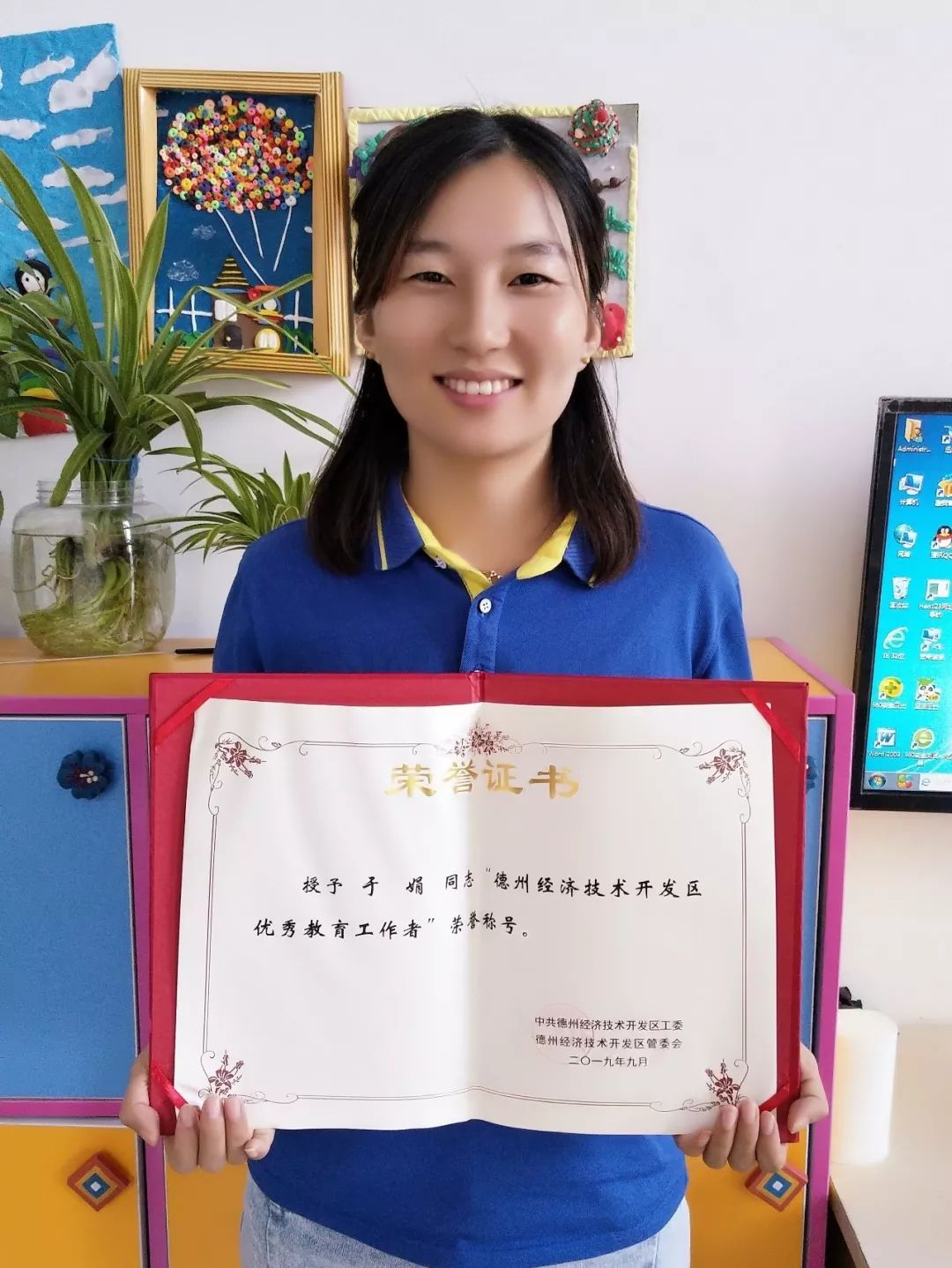 在德州經(jīng)濟技術開發(fā)區(qū)社會事業(yè)管理部組織的2019年全區(qū)教育系統(tǒng)先進集體先進個人評選推薦工作中,我校于娟老師獲得“優(yōu)秀教育工作者”榮譽稱號。