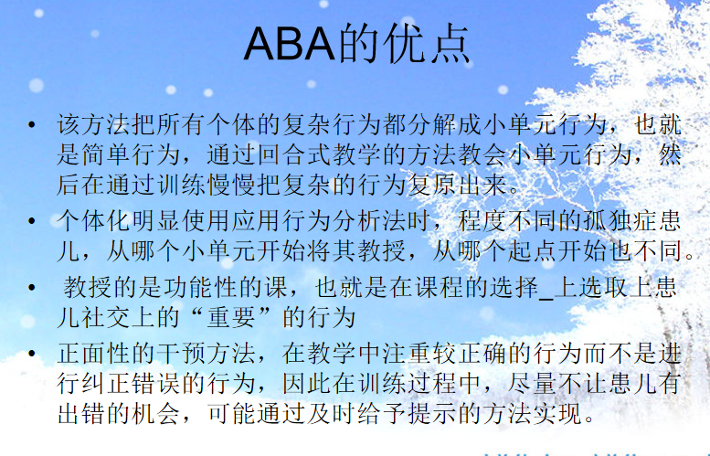 進而講述了ABA的優(yōu)點,以及為什么適用于孤獨癥的孩子。