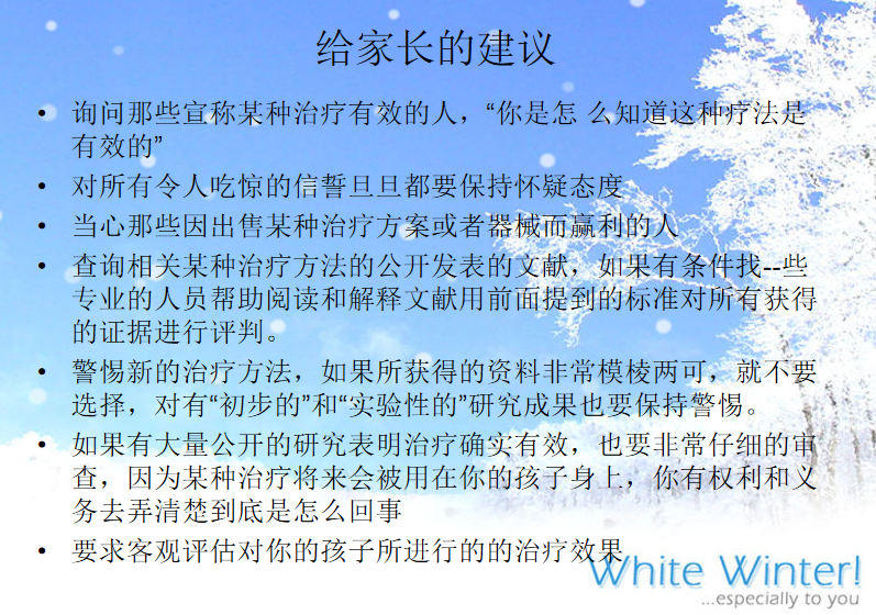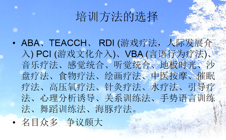 首先從名目眾多的康復(fù)手段開始,讓家長了解,確定可行的適合自己孩子的培訓(xùn)方法。