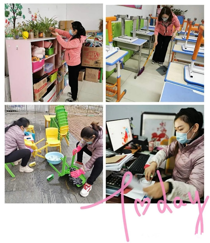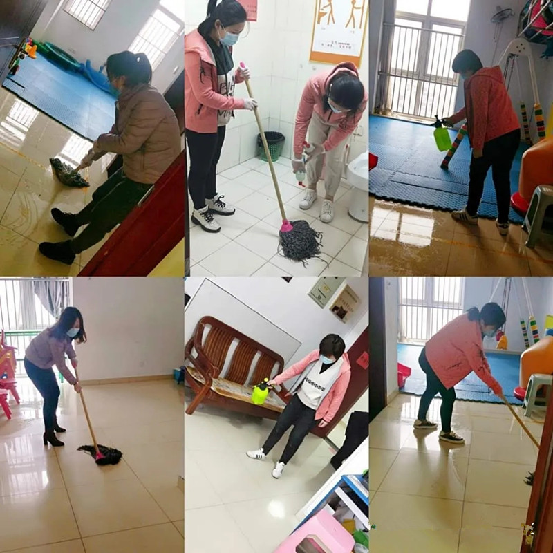 雖然孩子們暫時無法來校上課,但仍要保證教室的干凈整潔,不放過任何一個角落,所有教具、桌椅全部清洗消毒,不給病毒留機會!
