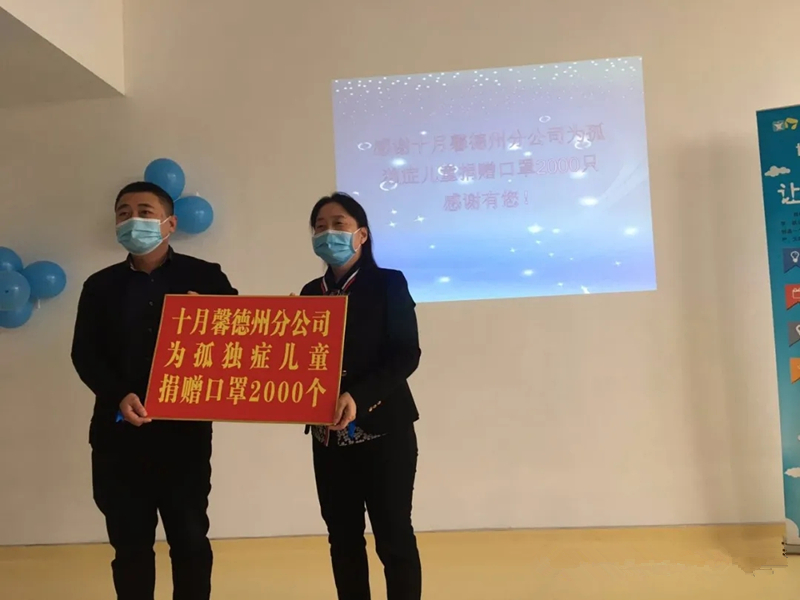 活動現(xiàn)場,愛心企業(yè)十月馨德州分公司捐贈2000個口罩,為孩子們復課做好防疫準備!感恩,感謝!