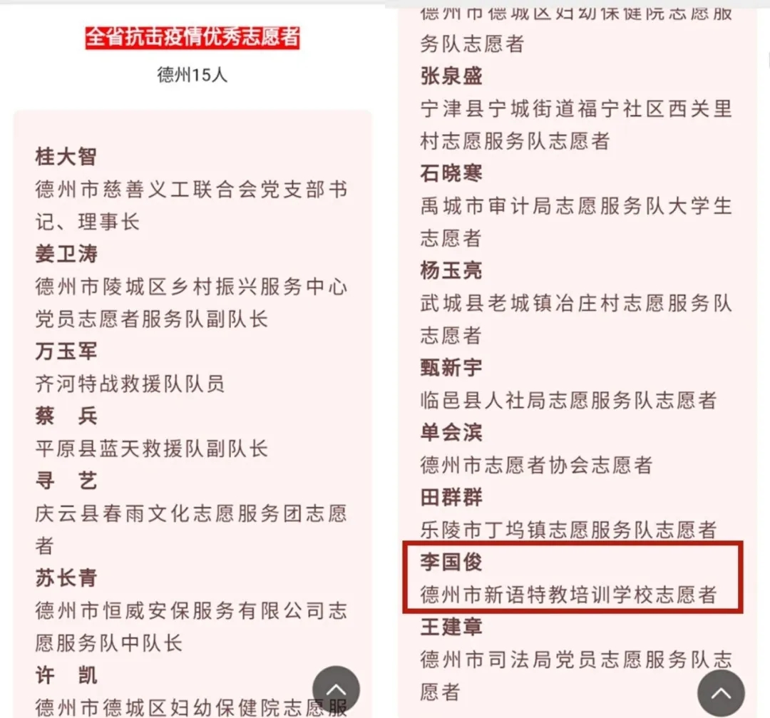 新語特教李國俊校長入選全省抗擊疫情優(yōu)秀志愿者