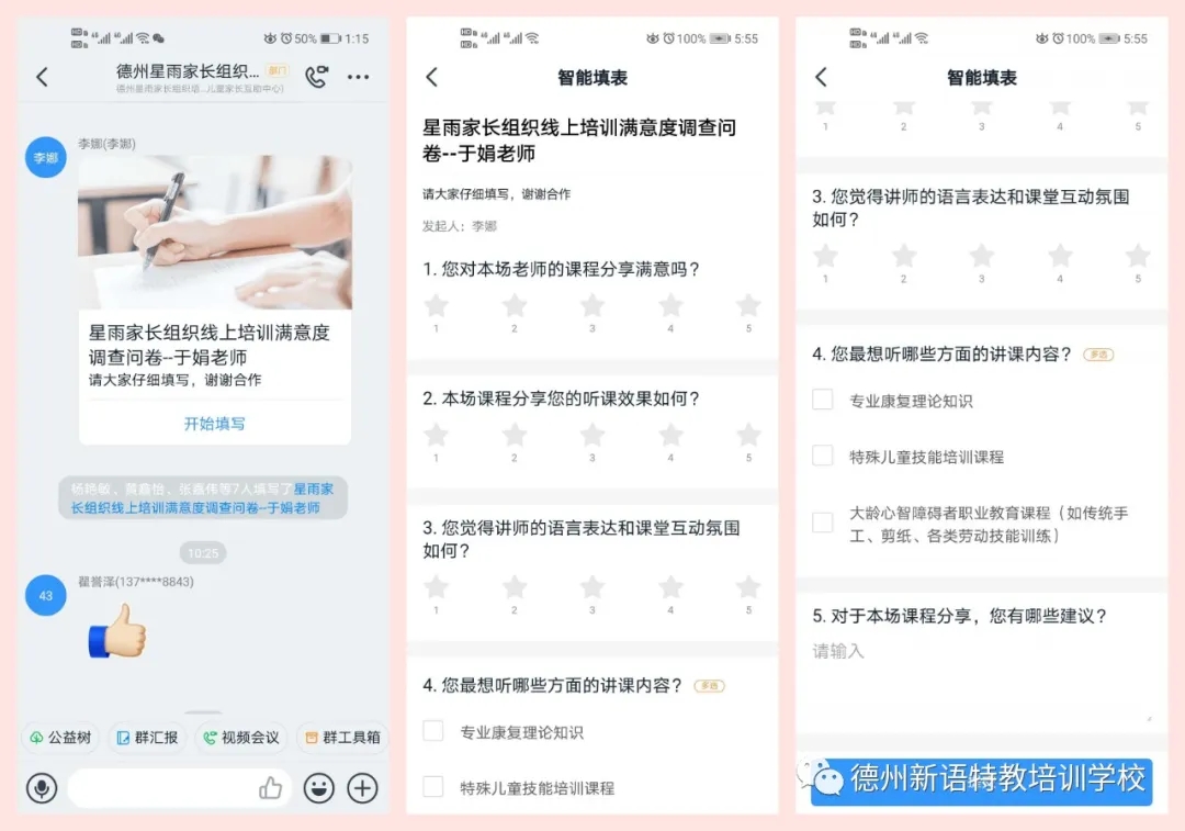 今天的課堂調(diào)查問(wèn)卷由李娜老師編輯發(fā)布,細(xì)心的娜娜老師根據(jù)不同的課程內(nèi)容編輯了不同的調(diào)查內(nèi)容請(qǐng)家長(zhǎng)們填寫(xiě)。