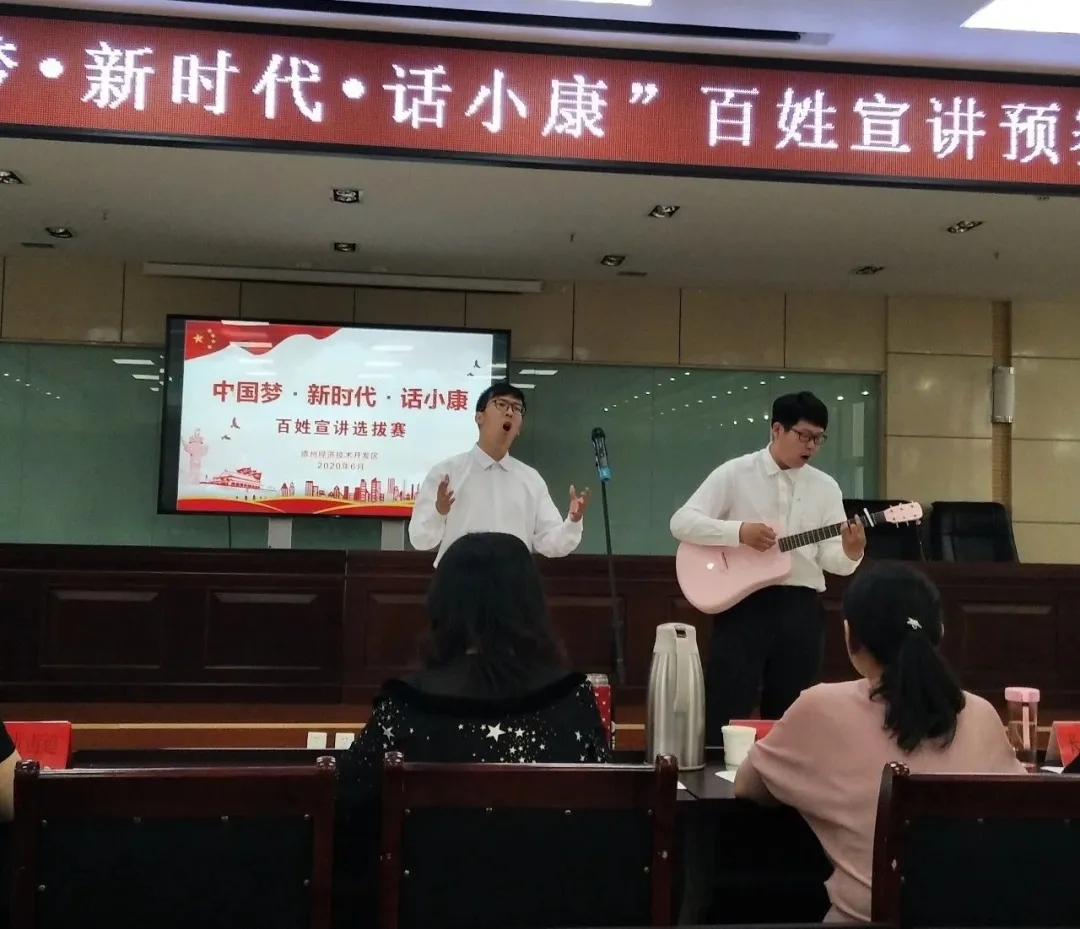 2020年6月2日上午,德州新語特教培訓(xùn)學(xué)校的侯建鵬、于洋二位老師代表學(xué)校參加由德州經(jīng)濟(jì)技術(shù)開發(fā)區(qū)管委會主辦的“中國夢 新時代 話小康”百姓宣講活動。