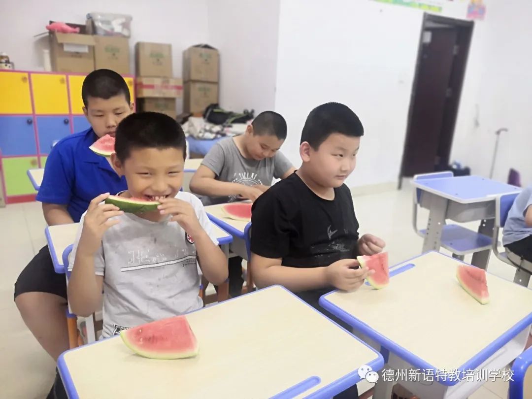 一聽到夏天,腦海里首先浮現(xiàn)出來的就是大西瓜了吧!解熱又解渴,甜到心窩窩~今天,德州新語特教培訓學校北校區(qū)的孩子們太幸福啦,我們的鄰居--中石油的叔叔阿姨為同學們送來了好多好多大西瓜,敞開肚皮吃吧~
