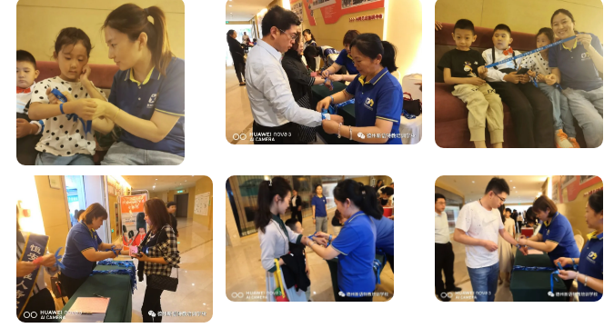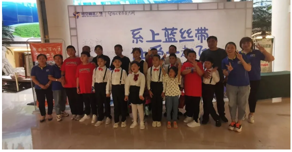 老師們?yōu)榇蠹蚁瞪舷笳麝P愛孤獨癥兒童的藍絲帶,一起守護可愛的孩子們。