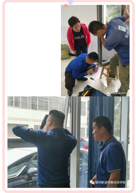 2020年國慶小長假期間,皇派門窗的負(fù)責(zé)人,新語特教星工坊藝涵的媽媽帶著工人們來到學(xué)校,將學(xué)校的所有門窗進(jìn)行了全面的檢修,確保孩子們在校上學(xué)期間的安全!