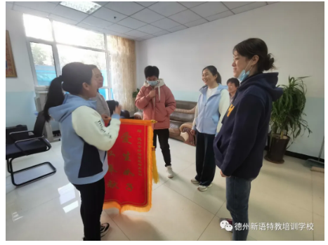 2020年10月24日下午,德州新語(yǔ)特教學(xué)校星工坊二班小雨的媽媽和姑姑為學(xué)校送來(lái)致謝錦旗。