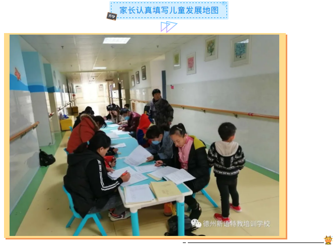 11月5日,老師們?yōu)樘?、淘淘、俏俏、甜甜四個(gè)班及部分新生約五十名孩子進(jìn)行了系統(tǒng)評(píng)估。評(píng)估包括感知覺(jué)、粗大動(dòng)作、精細(xì)動(dòng)作、認(rèn)知、理解、語(yǔ)言、生活自理、社會(huì)性、兒童情緒與行為八大能力領(lǐng)域,并為家長(zhǎng)講解兒童發(fā)展地圖的填寫(xiě)方式,請(qǐng)家長(zhǎng)填寫(xiě)。