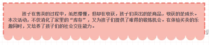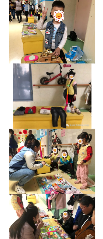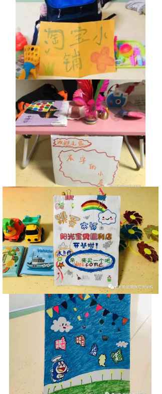 看,在家長幫助下,小朋友們提前做好了準(zhǔn)備,各個(gè)“攤位”整齊干凈,有玩具。幼兒圖書、小飾品、衣服等等各種商品,琳瑯滿目!漂亮的宣傳海報(bào),設(shè)計(jì)新穎,各種手工制作的廣告牌,創(chuàng)意十足!