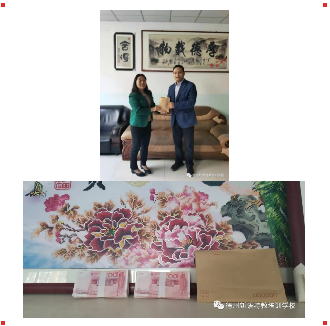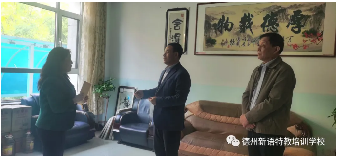 2021年5月2日下午,北京德州企業(yè)商會(huì)李廣虎會(huì)長(zhǎng)在王德勇秘書長(zhǎng)的陪同下來(lái)到德州新語(yǔ)特教培訓(xùn)學(xué)校,以個(gè)人名義捐款2萬(wàn)元。