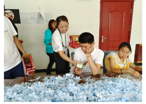 曲老師首先歡迎大家的到來,并為大家介紹學(xué)校心智障礙孩子們的情況,大家一起觀看學(xué)校發(fā)展歷程專題片,關(guān)愛心智障礙人士,行動從了解開始。
