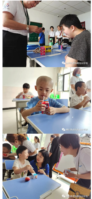 叔叔阿姨們走進每間教室,為孩子們送去水果,飲料等夏天的專屬禮物。