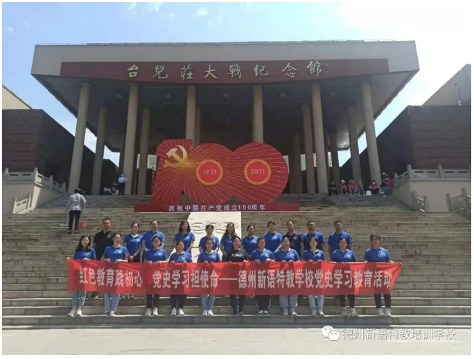 為慶祝建黨一百周年,把黨史學(xué)習(xí)教育與立德樹人的根本任務(wù)結(jié)合起來,2021年6月19日--20日,在黨支部書記裴婧老師的帶領(lǐng)下,德州新語特教培訓(xùn)學(xué)校的黨員、黨員發(fā)展對(duì)象及入黨積極分子共計(jì)22人前往棗莊開展“學(xué)黨史 明初心 知使命”主題教育活動(dòng)。