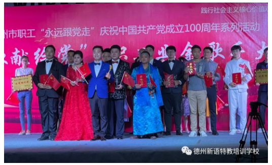 2021年6月23日,德州新語(yǔ)特教培訓(xùn)學(xué)校老師袁振魯、于洋、侯建鵬三位老師參加了由德州市總工會(huì)主辦的德州市“頌歌獻(xiàn)給黨”職工業(yè)余歌手大賽,共有49組參賽選手參加了這次大賽,其中我校于洋、侯建鵬二位老師在活動(dòng)中榮獲三等獎(jiǎng)!