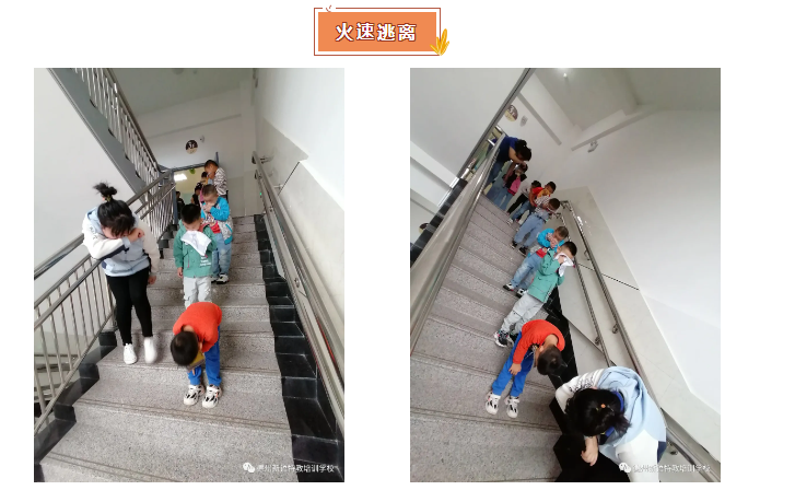 隨著一陣急促的警報聲,消防演練正式開始了。在老師們的引導(dǎo)下,孩子們迅速按照緊急預(yù)案的疏散線路,用毛巾捂住口鼻,低姿勢彎腰前行,從教室有秩序、不慌亂地沿著指定路線撤離到的安全地帶。