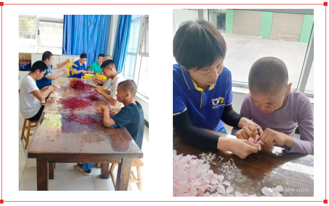 在班主任李恩英老師和助教老師們的耐心指導(dǎo)下,如今的佳偉,掌握了好多技能,和同學(xué),老師們一起插花,學(xué)技能,最主要的是,在這里,佳偉每天都特別快樂。