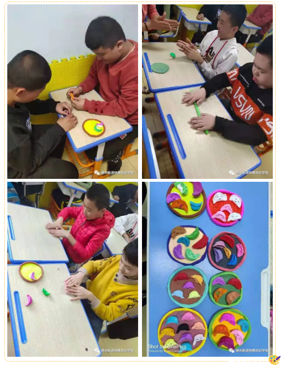 老師們先用橡皮泥教孩子們如何包餃子,看!一個個彩色的餃子是不是很漂亮!