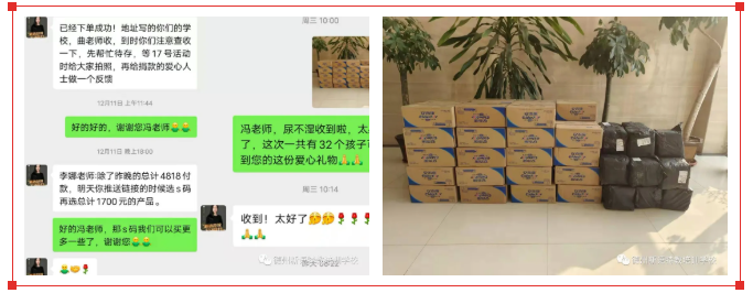 了解到學(xué)校有很多貧困家庭,馮老師組織金剛書院的學(xué)員們?yōu)樵谛:退徒痰呢毨Ъ彝ゾ栀浟诉^冬的衣物,幫助大家度過寒冬。