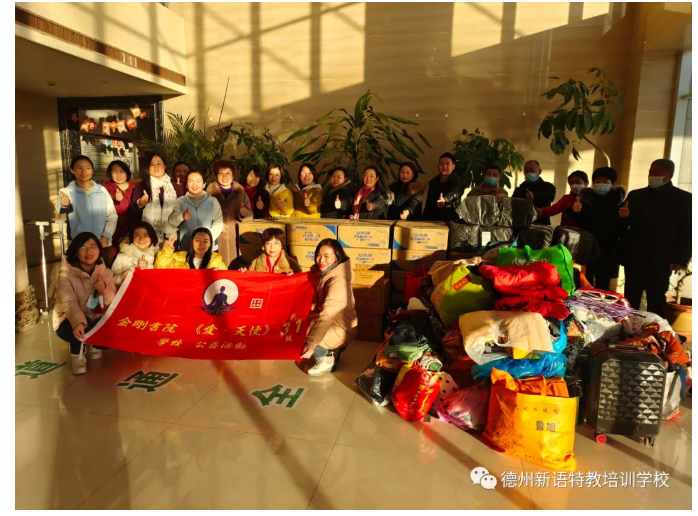 2021年12月17日下午,金剛書院馮書玲老師與愛心人士們再次來到德州新語特教培訓(xùn)學(xué)校,為孩子們送來冬天的衣物,并為重度殘疾的貧困送教學(xué)生家庭送來了64箱尿不濕。