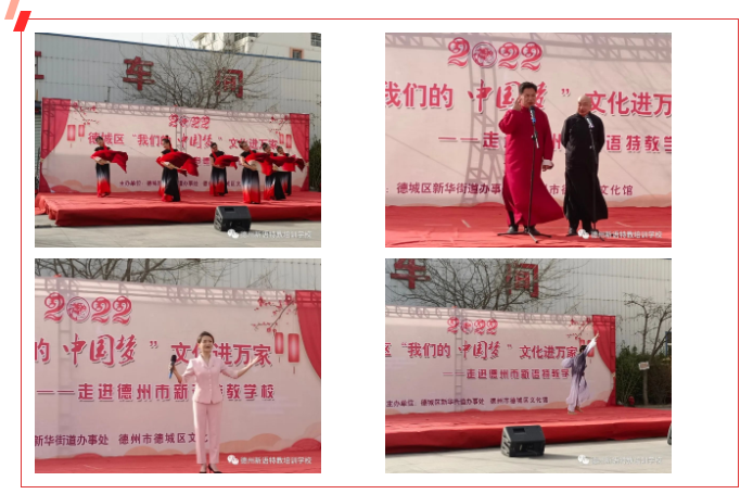 關(guān)愛特殊兒童,傳播社會(huì)主義核心價(jià)值觀,2022年3月4日下午,德州市德城區(qū)新華街道辦事處聯(lián)合德城區(qū)文化館舉辦“我的中國夢”文化進(jìn)萬家--走進(jìn)德州新語特教學(xué)校文藝演出活動(dòng)。