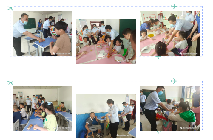 叔叔阿姨們一起走進每間教室,和孩子們近距離接觸,看到這么多叔叔阿姨的到來,孩子們都開心極啦!熱情又大聲地和大家問好。叔叔阿姨還為孩子們帶來了美味的零食和學習用品作為六一兒童節(jié)的禮物~