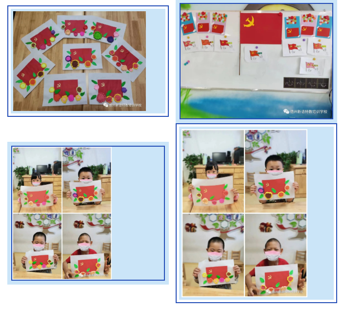 作品展示:寶貝們手持自己的作品,祝中國共產(chǎn)黨生日快樂!