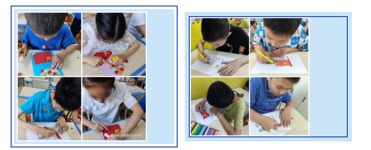 孩子們用稚拙的雙手,或剪、或粘、或畫、或涂,制作出一張張畫作,獻(xiàn)禮“七一”,致敬祖國!