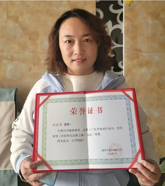劉欣秀老師在德州市隨班就讀、送教上門(mén)優(yōu)秀案例評(píng)選中,榮獲二等獎(jiǎng)。劉老師自2016年入職德州新語(yǔ),2019年起,她第一批加入送教團(tuán)隊(duì),為孩子們送教上門(mén),她用心幫助每一個(gè)貧困殘疾人家庭,做到了用愛(ài)點(diǎn)亮送教之路。