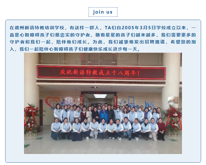 【招賢納士】德州新語特教學(xué)校誠邀您的加入!