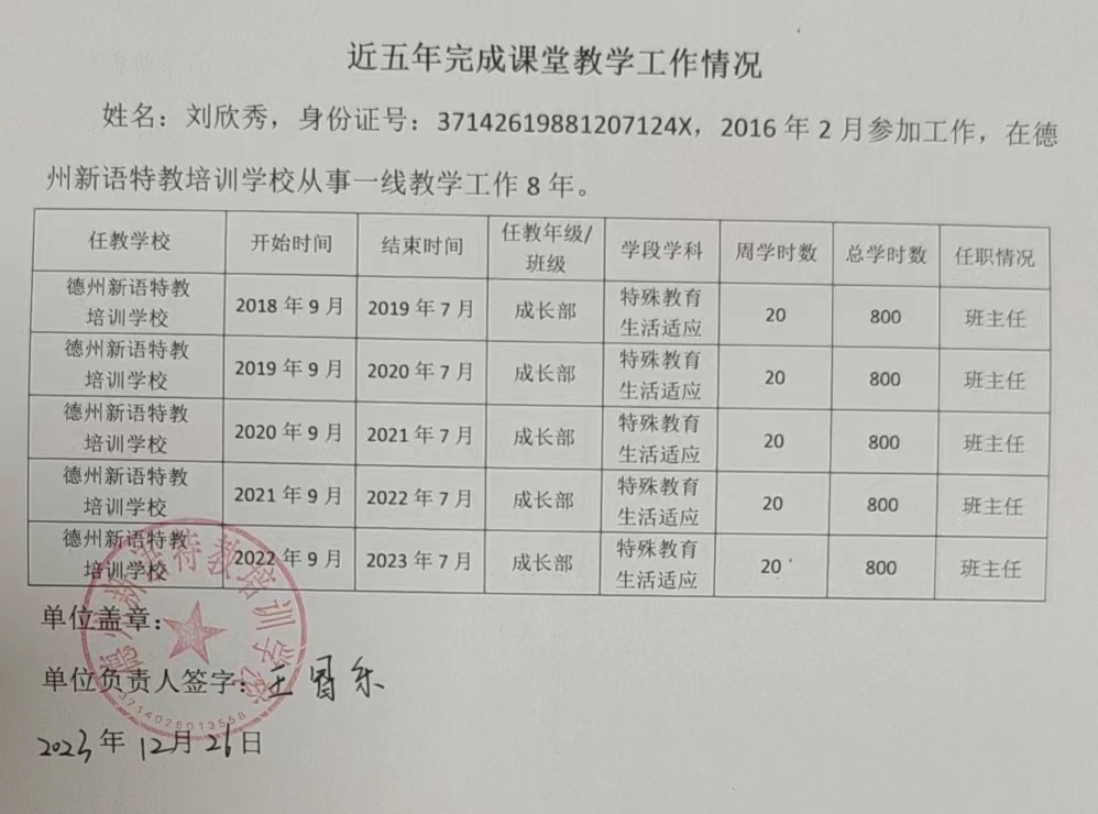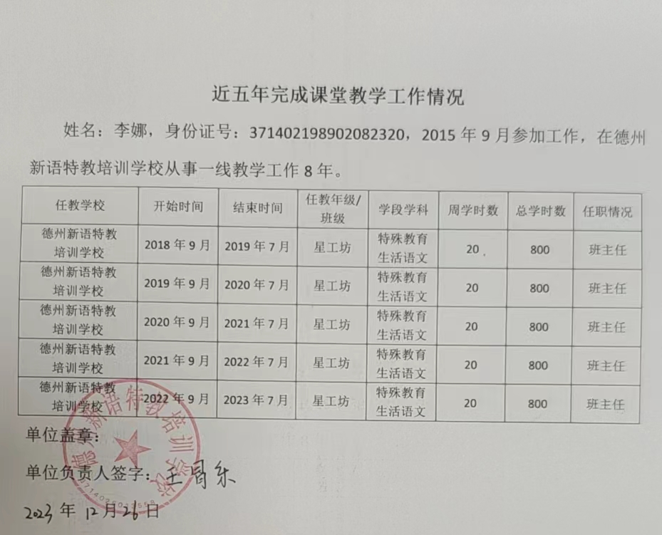 德州新語特教培訓(xùn)學(xué)校2023年中級職稱申報人員課堂教學(xué)工作情況公示